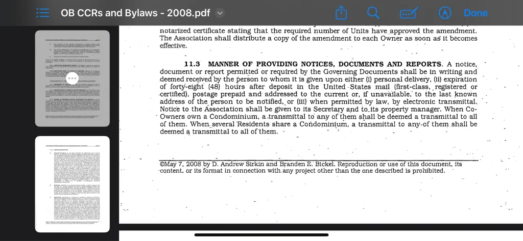 “A notice, document, or report permitted or required by the governing documents shall be in writing and deemed received […]”, “when permitted by law, by electronic transmittal”