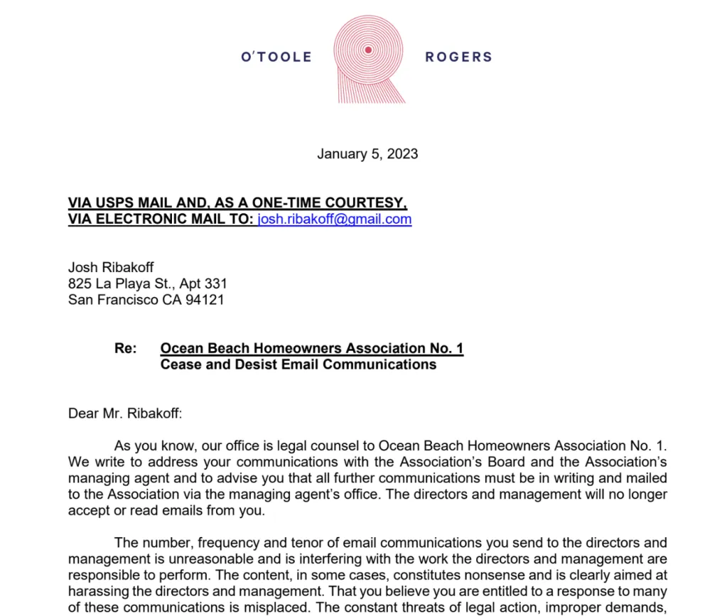 - “You will never have access to email the HOA ever again.”