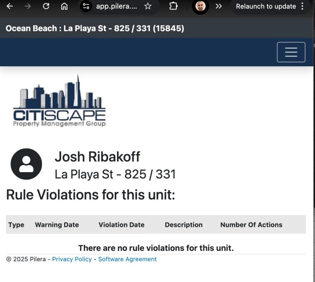 This screenshot taken July 1st, 2025 proves I have never received any Rule violation.