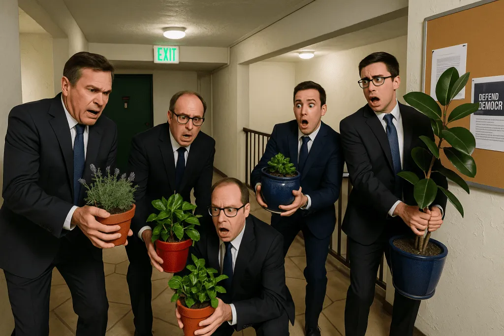 You can almost hear the minutes being read: “Motion to remove all unauthorized foliage.” The language is formal, the intent is bureaucratic, and the result is accidentally hilarious. If any organization could make a rubber plant look like contraband, it’s ours.
